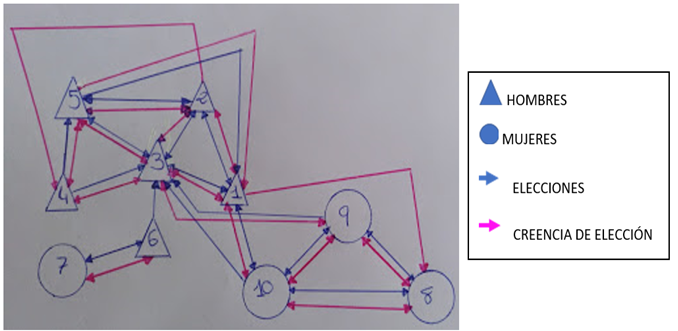 Representación gráfica de los resultados de la sociomatriz:
